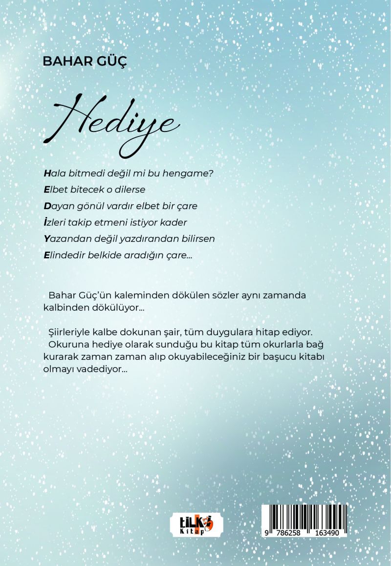 Bahar Güç`ün kaleminden dökülen sözler aynı zamanda kalbinden dökülüyor... Şiirleriyle kalbe dokunan şair, tüm duygulara hitap ediyor. Okuruna bir hediye olarak sunduğu bu kitap tüm okurlarla bağ kurarak zaman zaman alıp okuyabileceğiniz bir başucu kitabı olmayı vadediyor...
