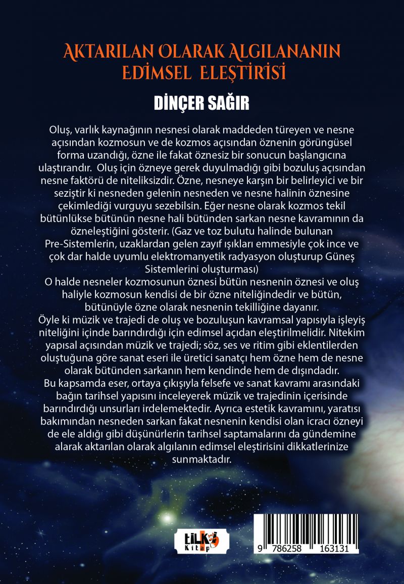 Yayınlanan KitaplarAraştırmaAktarılan Olarak Algılananın Edimsel Eleştirisi- Sanat Felsefesi - Müzik ve Trajedi Üzerine