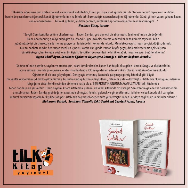 `Senirkent`imizin sevilen, sayılan ve aranan şairi, ozanı kimdir deseler, Faden Sarıdaş ilk akla gelen isimdir. Duygu ve düşüncelerini, acı ve sevincini anında şiire çeviren, ender insanlardandır. Okumaya devam edecek imkânı olsa idi mutlaka öğretmen olurdu. Öğretmenlik de ona çok yakışırdı. Genç yaşta evlenmiş, İstanbul`a çalışmaya gitmiş. İstanbul gibi büyük bir kentte kaybolmamış dimdik ayakta durmuş. Gurbetin verdiği hüzünle duygularını, özlemini şiirlere dökmüştür. Kitabında okuduğum şiirlerinin birçoğunu bizzat kendi sesinden dinlemek nasip oldu. `SENİRKENT`İN UNUTULMAYAN USTALARI` adlı kitabımda Faden Sarıdaş`a da yer verdim. Onun hayatını kısaca kitabımda şiirlerini de kendi kitabında okuyacağız. Senirkent`in gelenek ve göreneklerinin unutulmaması Faden Sarıdaş gibi değerler sayesinde olmuştur. Kendisi gelenek ve göreneklerimizi iyi bilen ve bu konuda akıl danışılan kültürel mirasımızı yaşatan bir kişiliğe sahiptir. Kitabında da yöresel adetlerimize yer vermiştir. Faden Sarıdaş`a sağlıklı uzun ömürler dilerim.`