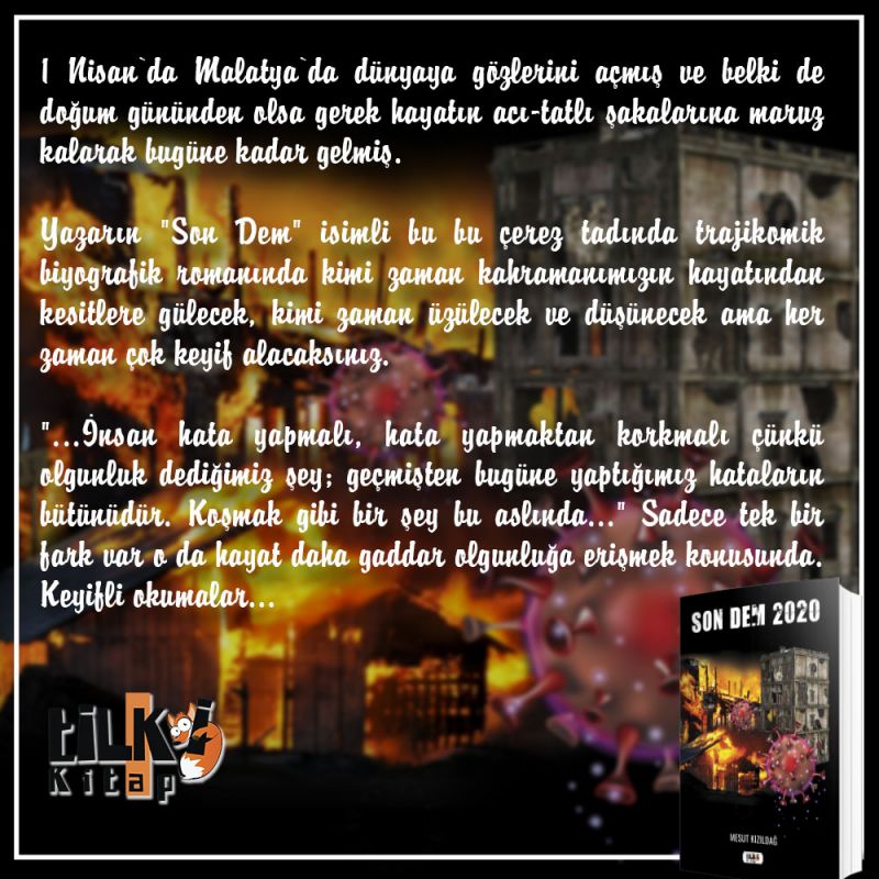 Yazarın "Son Dem" isimli bu çerez tadında trajikomik biyografik romanında kimi zaman kahramanımızın hayatından kesitlere gülecek, kimi zaman üzülecek ve düşünecek ama her zaman çok keyif alacaksınız.