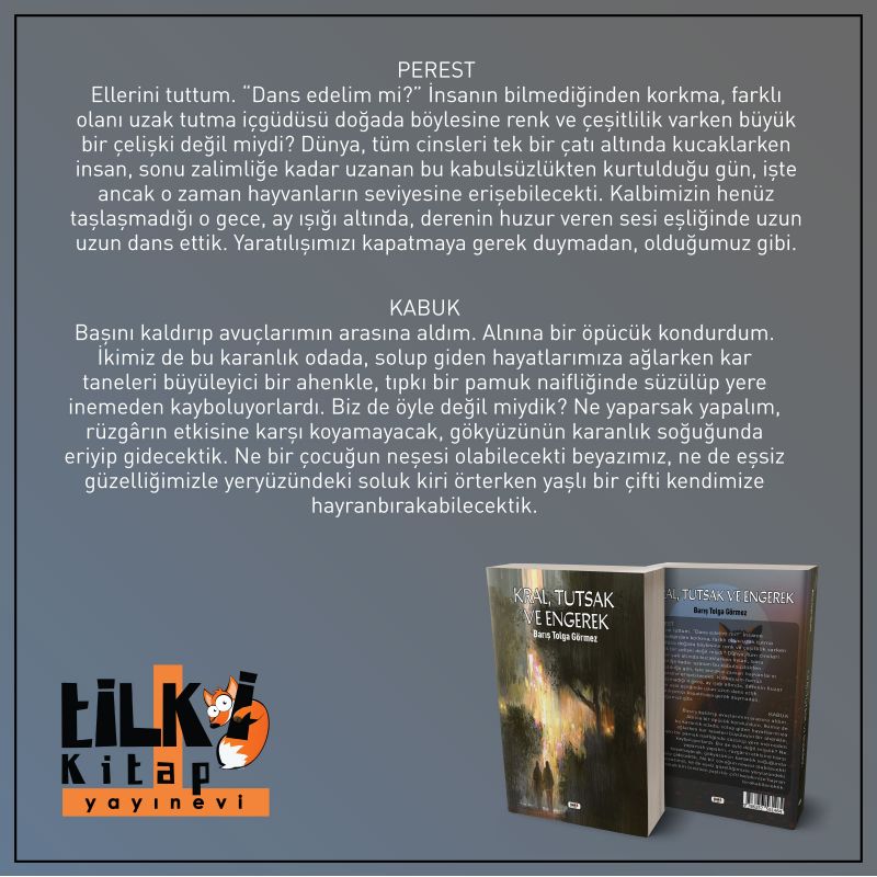 Ellerini tuttum. `Dans edelim mi?` İnsanın bilmediğinden korkma, farklı olanı uzak tutma içgüdüsü doğada böylesine renk ve çeşitlilik varken büyük bir çelişki değil miydi? Dünya, tüm cinsleri tek bir çatı altında kucaklarken insan, sonu zalimliğe kadar uzanan bu kabulsüzlükten kurtulduğu gün, işte ancak o zaman hayvanların seviyesine erişebilecekti. Kalbimizin henüz taşlaşmadığı o gece, ay ışığı altında, derenin huzur veren sesi eşliğinde uzun uzun dans ettik. Yaratılışımızı kapatmaya gerek duymadan, olduğumuz gibi.