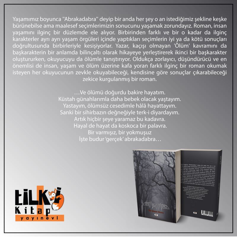 Yaşamımız boyunca ``Abrakadabra`` deyip bir anda her şey o an istediğimiz şekline keşke bürünebilse ama maalesef seçimlerimizin sonucunu yaşamak zorundayız. Roman, insan yaşamını ilginç bir düzlemde ele alıyor. Birbirinden farklı ve bir o kadar da ilginç karakterler ayrı ayrı yaşam örgüleri içinde yaptıkları seçimlerin iyi ya da kötü sonuçları doğrultusunda birbirleriyle kesişiyorlar. Yazar, kaçışı olmayan `Ölüm` kavramını da başkarakterin bir anlamda bilinçaltı olarak hikayeye yerleştirerek ikinci bir başkarakter oluştururken, okuyucuyu da ölümle tanıştırıyor. Oldukça zorlayıcı, düşündürücü ve en önemlisi de insan, yaşam ve ölüm üzerine kafa yoran farklı ilginç bir roman okumak isteyen her okuyucunun zevkle okuyabileceği, kendisine göre sonuçlar çıkarabileceği zekice kurgulanmış bir roman.