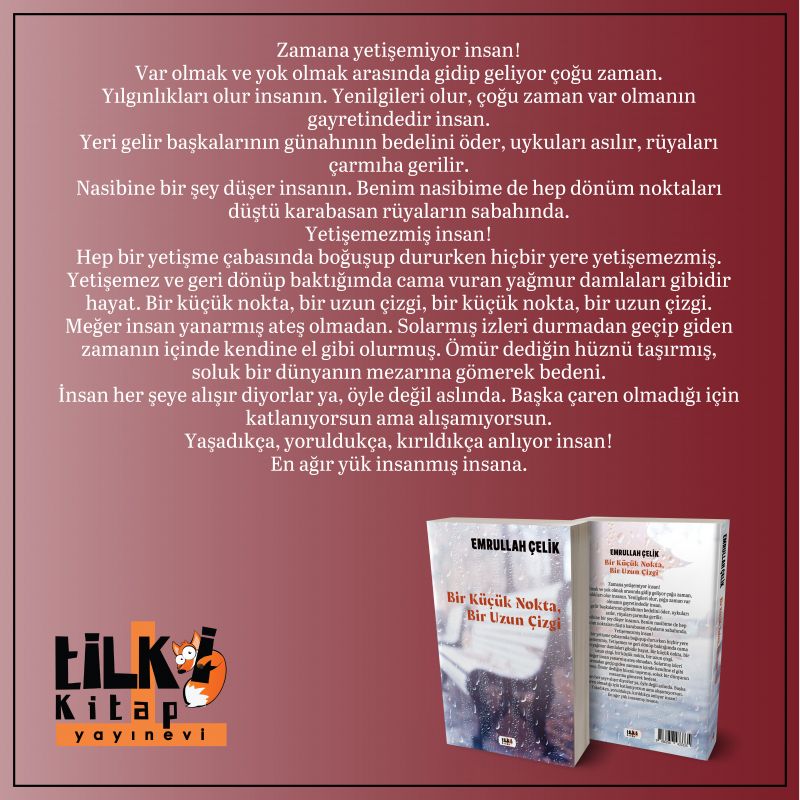 Hep bir yetişme çabasında boğuşup dururken hiçbir yere yetişemezmiş. Yetişemez ve geri dönüp baktığımda cama vuran yağmur damlaları gibidir hayat. Bir küçük nokta, bir uzun çizgi, bir küçük nokta, bir uzun çizgi