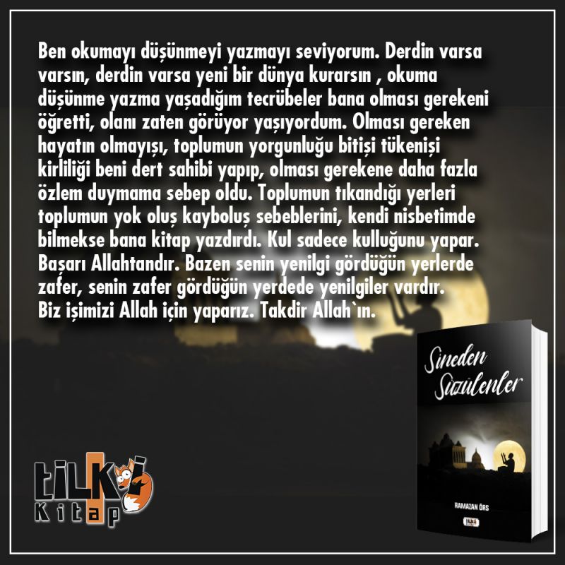 Ben okumayı düşünmeyi yazmayı seviyorum. Derdin varsa varsın, derdin varsa yeni bir dünya kurarsın , okuma düşünme yazma yaşadığım tecrübeler bana olması gerekeni öğretti, olanı zaten görüyor yaşıyordum. Olması gereken hayatın olmayışı, toplumun yorgunluğu bitişi tükenişi kirliliği beni dert sahibi yapıp, olması gerekene daha fazla özlem duymama sebep oldu. Toplumun tıkandığı yerleri toplumun yok oluş kayboluş sebeblerini, kendi nisbetimde bilmekse bana kitap yazdırdı. Kul sadece kulluğunu yapar. Başarı Allahtandır. Bazen senin yenilgi gördüğün yerlerde zafer, senin zafer gördüğün yerdede yenilgiler vardır. Biz işimizi Allah için yaparız. Takdir Allah`ın. Doğruların başaldığı yerde anlatmaya değer hayat hikayende başlar. Bu kitap: Benim doğrularım, benim hikayem. Eğer sizde de düşünerek kendi doğrularınızı oluşturmanıza vesile olduysam bana ne mutlu işte o zaman kitabın yazılmasındaki maksat hasıl olmuştur. Kur`an-ı kerimde bütün insanlar her ne halde, ne durumda ölürse ölsün kıyamet koptuğunda bütün ölüler dirilir, ve Rablerine koşarak gelirler ve amel defterleri önlerine konur, onlar şaşırır, bu da ne, dünyada ne amel yaptıysak küçük büyük denmemiş hepsi yazılmış derler. Koptumu o vakıa bir olmaz ona yalan diyen dil. Gel din günü yaptıklarınla yüzleşmeden, ölmeden önce yüzleş, sor sorgula, Hakkı an, Hakkı ara, Hak yolda yürü. Unutma bu dünya vefasızdır mındardır Müslümanlık ta önce hamd, sonra aşk gelir. Cehennem aşkı başaramamaktır