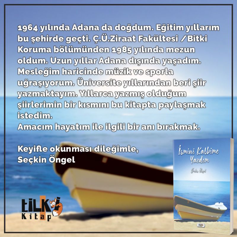 : 1964 yılında Adana da doğdum. Eğitim yıllarım bu şehirde geçti. Ç.Ü Ziraat Fakültesi / Bitki Koruma bölümünden 1985 yılında mezun oldum . Uzun yıllar Adana dışında yaşadım. Mesleğim haricinde müzik ve sporla uğraşıyorum . Üniversite yıllarından beri şiir yazmaktayım. Yıllarca yazmış olduğum şiirlerimin bir kısmını bu kitapta paylaşmak istedim. Amacım hayatım ile ilgili bi ranı bırakmak .