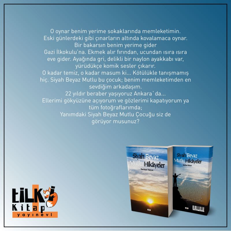 O oynar benim yerime sokaklarında memleketimin. Eski günlerdeki gibi çınarların altında kovalamaca oynar, bir bakarsın benim yerime gider Gazi İlkokuluna. Ekmek alır fırından, ucundan ısıra ısıra eve gider. Ayağında gri delikli bir naylon ayakkabı var, yürüdükçe komik sesler çıkarır. O kadar temiz, o kadar masum ki... Kötülükle tanışmamış hiç. Siyah Beyaz Mutlu bu çocuk benim memleketimden en sevdiğim arkadaşım. 22 yıldır beraber yaşıyoruz Ankara`da.